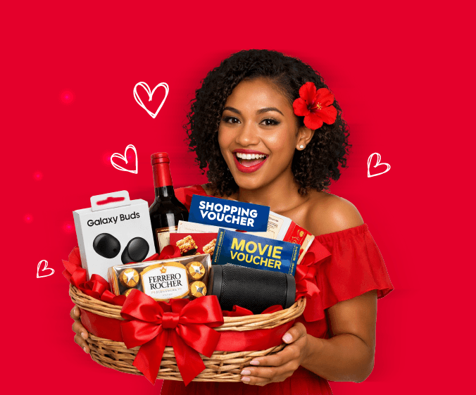 5 x Valentine’s Hamper Packs (1 per winner). Each Hamper Pack contains: Samsung ear buds, wine, chocolates, shopping vouchers from Proud’s, 2 x Movie Vouchers & Bluetooth speakers.
