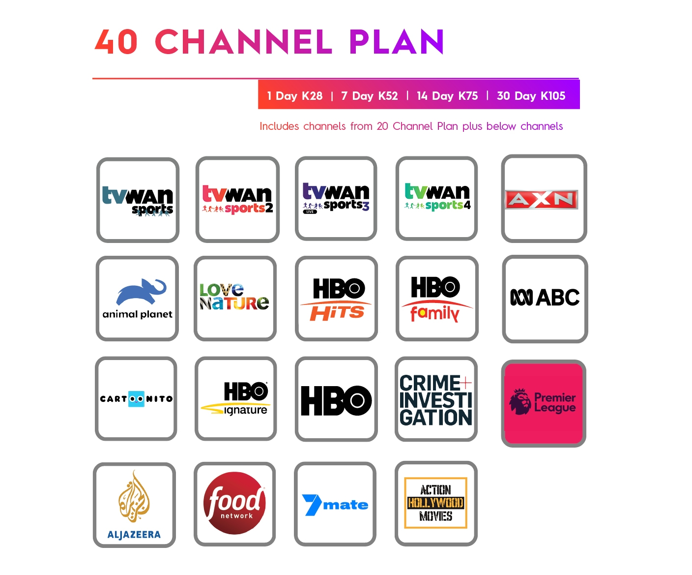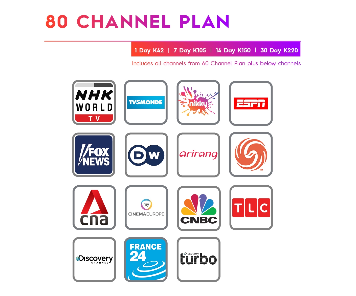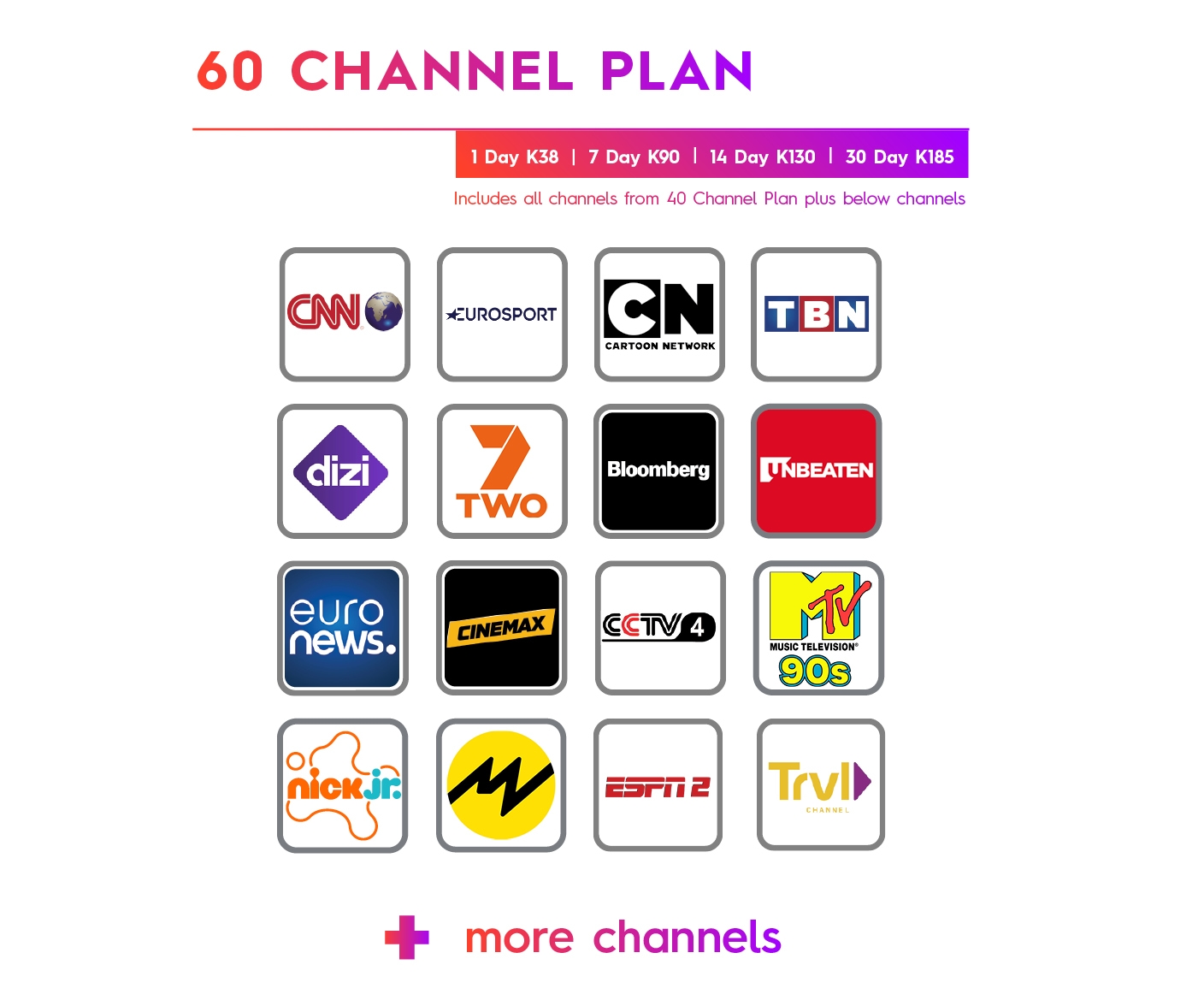 Dial *515# to subscribe to a Residential Prepaid TV Plan and remember to access all 90 channels you need to buy a red dish & decoder.